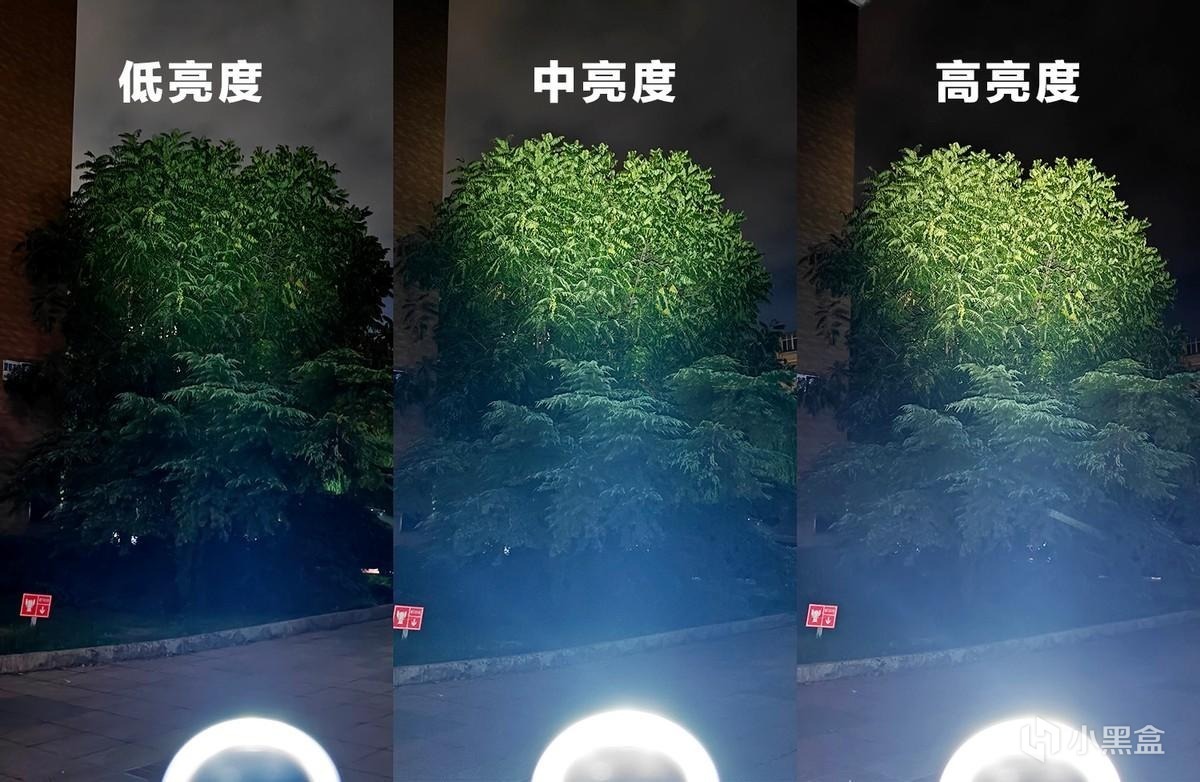距离方面我也进行了一下测试,比如我照射远处的树木,三种不同的亮度下对树木的照亮程度也有明显不同。因为拍摄设备无法直观展示准确的亮度,所以只能在这里告诉大家,高亮模式下的米家多功能便携手电真的超级亮!