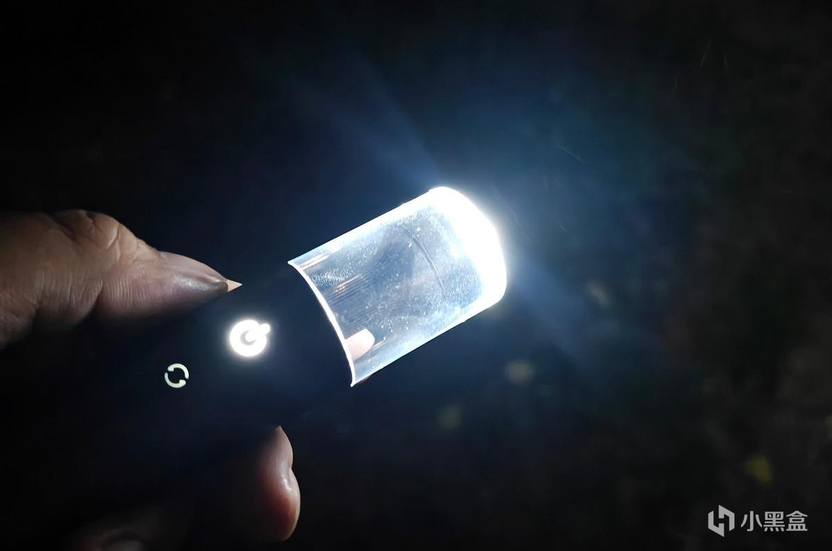 说一说灯光的体验感受吧,这个强光模式真的很给力,别看它只有一个灯珠,但亮度真心强,如果对着手心照射就能马上感受到灼热感。