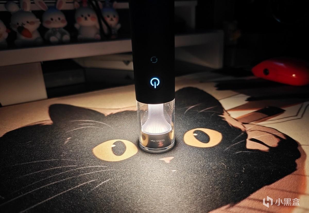 值得一提的是,米家多功能便携手电并不只有一个灯头,在手电筒的前部,还有一段是氛围灯,它也能起到照明的作用。不同于主灯的距离照明,这个氛围灯则是负责范围照明,因此是可以当做露营灯来使用的。