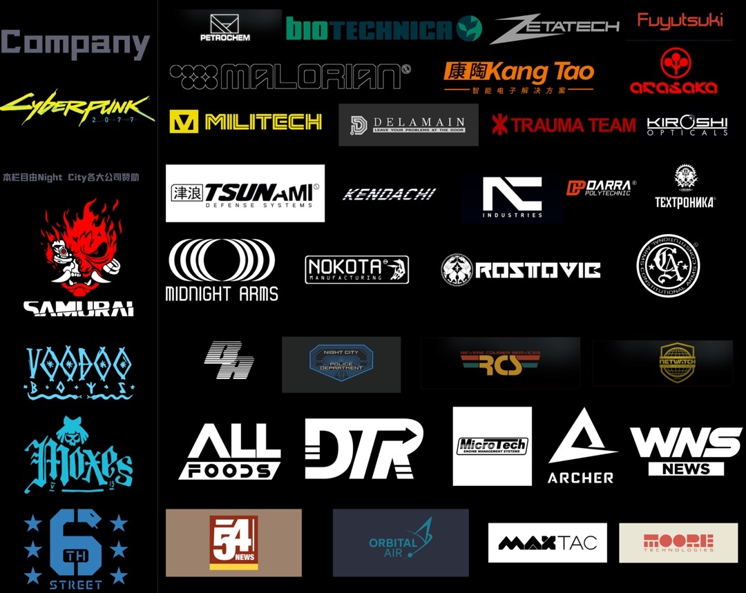 在文章的最後給大家看一張圖片,看看你認識多少個夜之城的公司