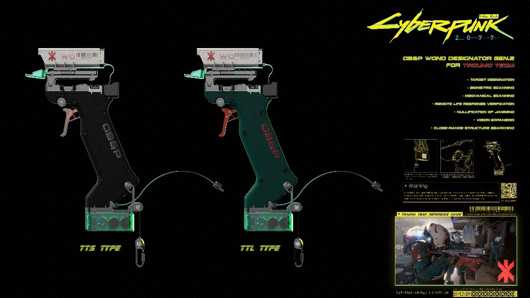 2020年,TTI已建立起超過十個創傷團隊,隨時準備在各大城市投入救援。夜之城內,TTI運營着一家大型醫療醫院,並在海外如東京的Trauma Team Japan和Trauma Team Europe設有分支機構。這些團隊由頂尖的輔助醫療技術人員和工作人員組成,他們乘坐重裝甲的AV-4創傷小隊移動,該小隊裝備了公司最先進的復甦和生命支持技術,如移動低溫罐。