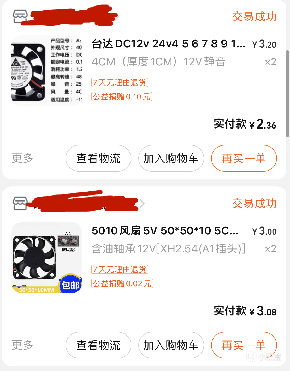刷好系统后,接下来我们需要准备一个小的手磨锯、一个电烙铁、一坨锡、12V两个4010风扇两个、12V5010风扇一个以及一条热熔胶(抛去电烙铁、锡、手磨锯成本在五元左右),具体方法是各位盒友老生常谈的签到红包,然后直接在里面搜4010风扇和5010风扇即可。(记得一定要买滚珠轴承的风扇,不然可能会有点吵)至于热熔胶?路边两元店两块钱四根