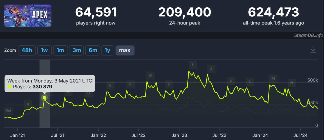 只能说一着不慎千古恨,因为沟槽的通行证背刺让老粉失去耐心,本身就觉得游戏更新太慢没啥子新鲜感,这下更甭伺候了!然后APEX的日活就直接砍半,创下了三年来最低水平,辛苦经营毁于一旦,一朝回到解放前。
