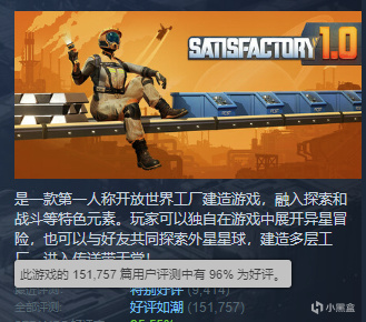 不過總的來說幸福工廠無疑是一款非常優秀的遊戲,遊戲15W條好評,96%的好評率足以證明遊戲的優秀,在3d自動化流水線建造中的地位無需多言。