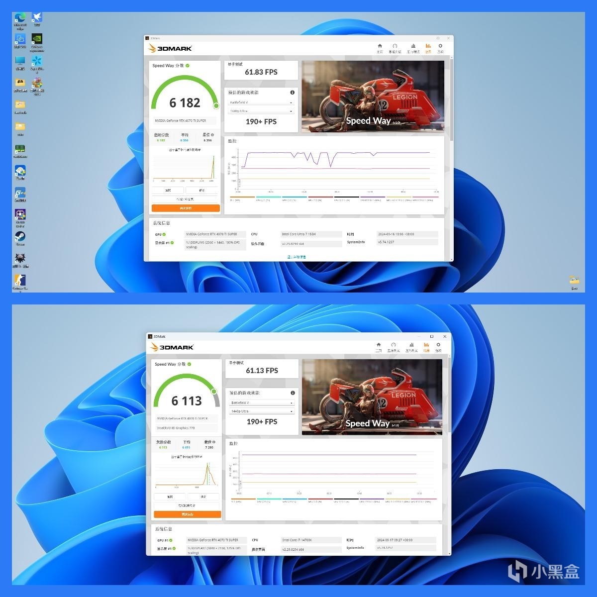 ● 零刻EX拓展坞最终分数为6182 / 台式机最终分数为6113