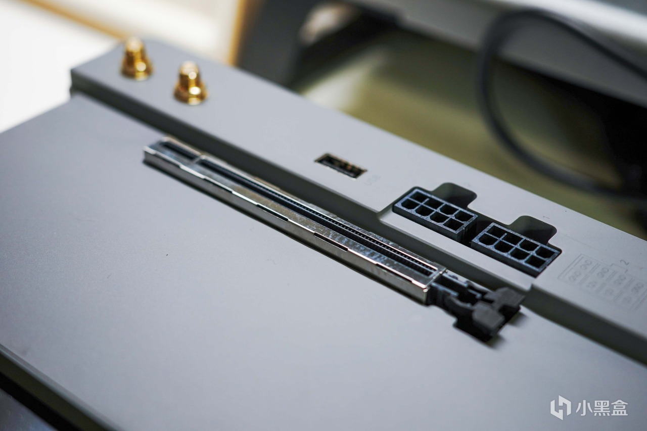 正面的接口为PCI接口,用于接入迷你主机,不用的时候记得保护下,用显卡送的那种保护套就行。