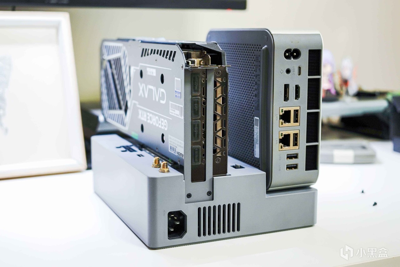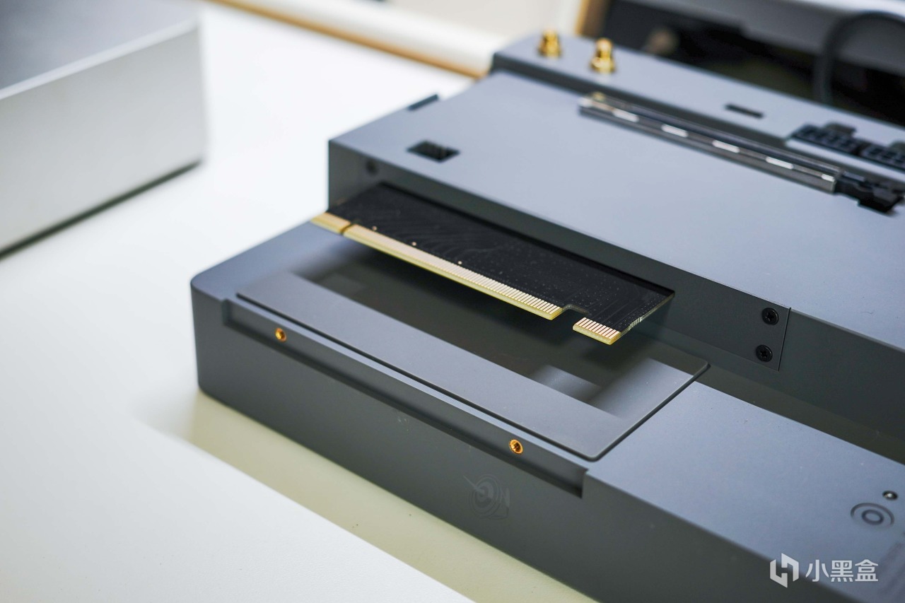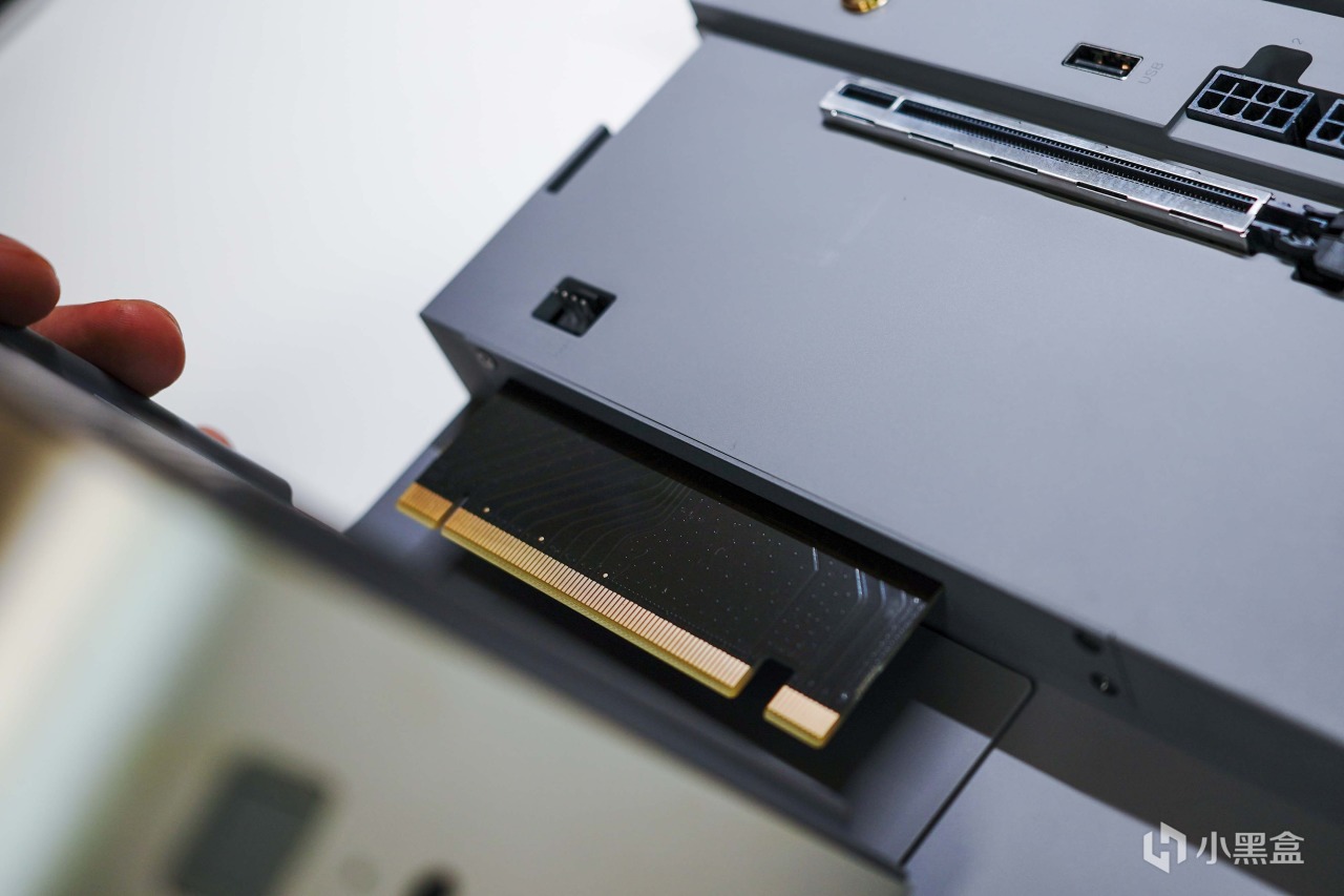 独立显卡接入也是一样,接口防呆,插不进去就是没对准,同样需要用拓展坞原装挡板+螺丝固定一下。