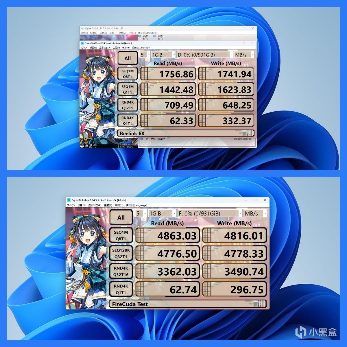 ● 零刻EX拓展坞的顺序写入速度为1741.94MB/s / 台式机的顺序写入速度为4816.01MB/s