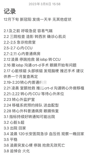 名闫的情况很危机,住院后一度凌晨心脏停跳,但好在医生们把他从鬼门关拉了回来,病情也变得稳定。之后医生建议进行心脏移植,从而根除隐患,名闫也进行了移植系统预约,有送血配型。