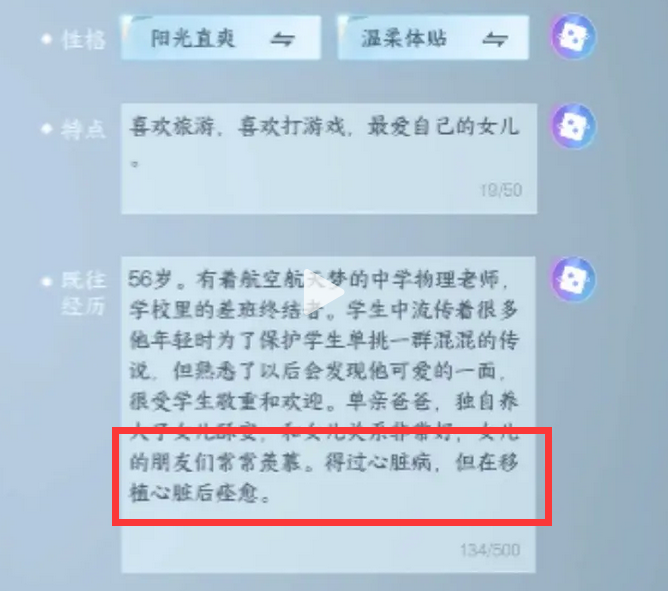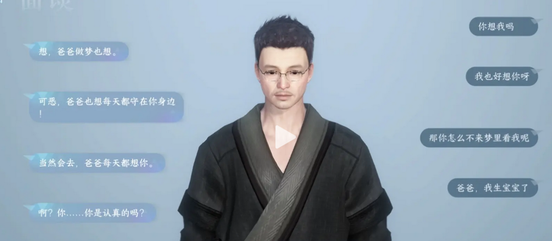 这就是名闫身上发生的事情。女儿很后悔,她觉得自己做错了选择,应该留在医院的、应该坚持做心脏移植的.....在这种自责与埋怨中,一年半过去了,她发现自己玩的游戏更新了个自捏NPC系统,遂输入信息“复活”了爸爸,于是就有了前面的故事。