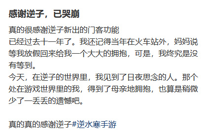 而越了解这个系统的深度,我也越乐意为《逆水寒手游》的设计团队这一操作喝彩,因为他们让代码多出了一丝人情味,有让游戏在娱乐之外,能够治疗人心中的病结。