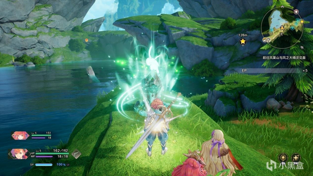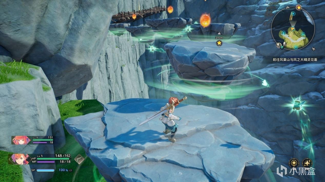 《聖劍傳說 Visions of Mana》的探索設計自然也有可取之處,玩家經常需要面對大範圍的世界跑圖,製作組針對不同種類的地形提供了包含“海”“陸”“空”在內多樣的交通工具,比如搖搖鈴鐺就能騎乘小豬在原野上馳騁。繁多的傳送點和快捷傳送設置也大幅減少了玩家跑圖壓力。此外,遊戲的引導設計還非常清晰,不僅主線和支線標誌都會清晰在玩家面前浮現,小地圖也能顯示玩家當前所處位置和周圍可互動點,玩家甚至可以使用瑪那聖樹的力量直接召喚標記指引尋路,簡直就是製作組手把手地將你送到下一個任務點(這種保姆式的設計固然非常舒服,但換句話說,過多的元素加入也可能讓一部分人覺得UI界面相對冗雜,但我覺得《聖劍傳說 Visions of Mana》還是把控住了一個很好的度,引導清晰又不至於遮擋太多畫面本身的元素。)