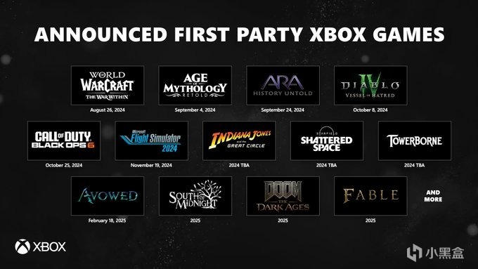 Xbox官方在上个月还发布了下半年和明年的第一方游戏名单,《神话时代:重述版》在本月发售,《Ara:不为人知的历史》在24日发售,下半年确定即将发售的游戏还有暗黑破坏神4首个资料片憎恨之躯、《使命召唤21:黑色行动6》、《微软模拟飞行2024》等。