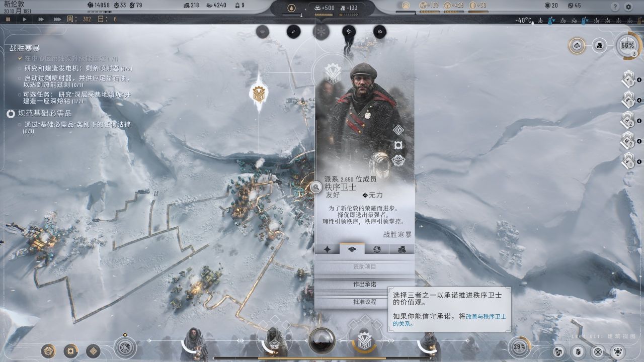 從資源的獲取與分配、城市的規劃建設,到派系關係的處理和政治決策的制定,每一個環節都需要深思熟慮。玩家需要在滿足城市基本生存需求(如能源、食物、供暖等)的同時,應對各種突發狀況和危機,如不定期來襲的暴風雪天氣等,還要在派系之間周旋,做出艱難的選擇。這種多維度的策略考量和高難度的挑戰,使得遊戲過程充滿緊張感和刺激感,每一個決策都可能影響城市的命運。