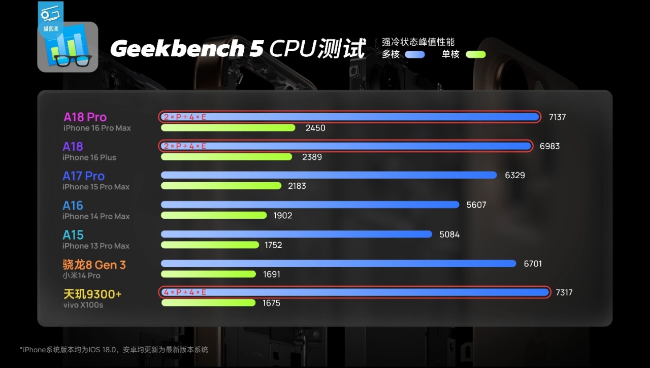 ——受限iOS 18Boost调度,新版系统下,整体跑分将低于此前水准。