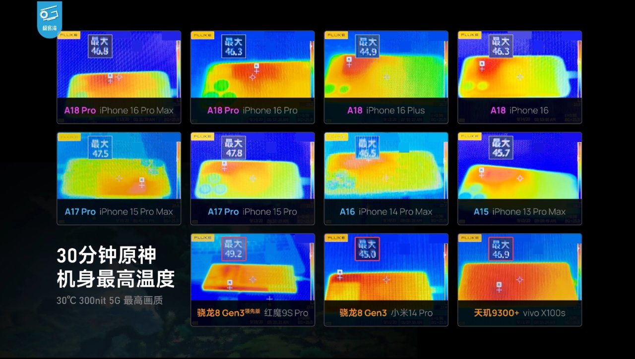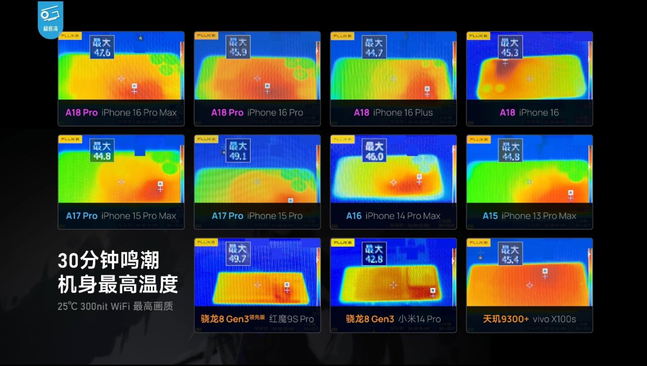 ◆ 机身温度:全系列机身最高46.8度,相较前代帧率更高,温度更低;