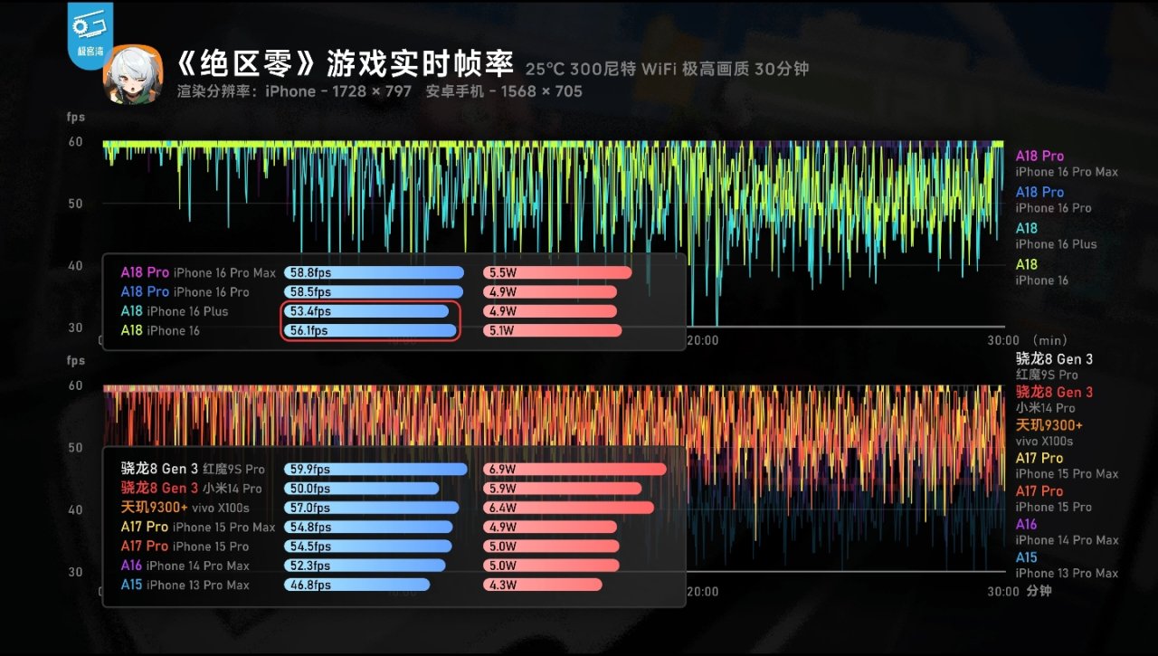 【2】iPhone 16 Pro,疑似存在固件问题,在高负载游戏场景中实际功耗过低。