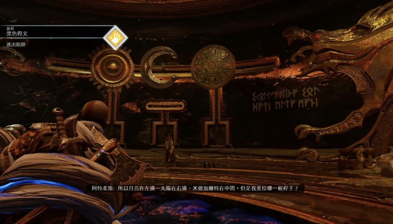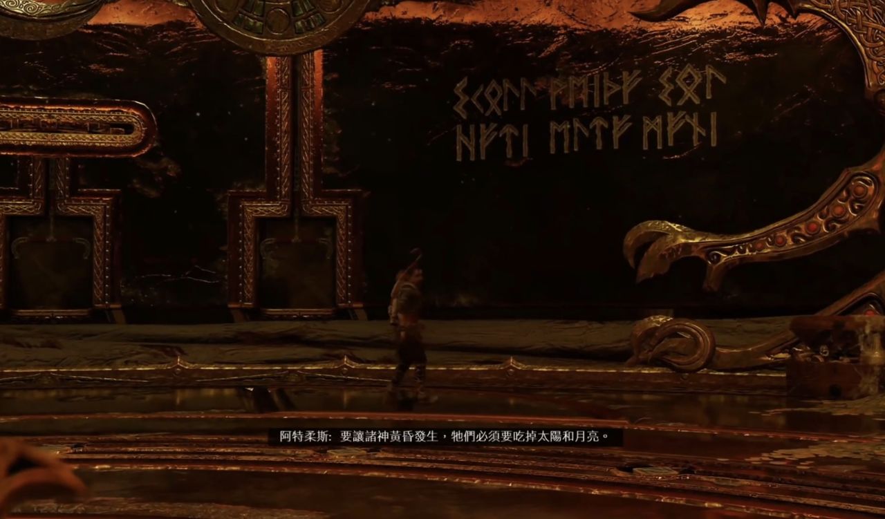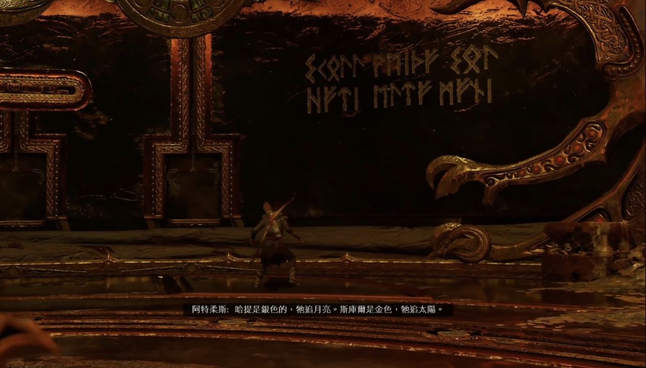 在戰神四中有一關解謎,我們讓兒子操作機關讓哈提喫掉機關中的月亮,斯庫爾喫掉機關中的太陽之後奎爺才能擺脫束縛。並且這也爲戰神五的諸神黃昏埋下伏筆。