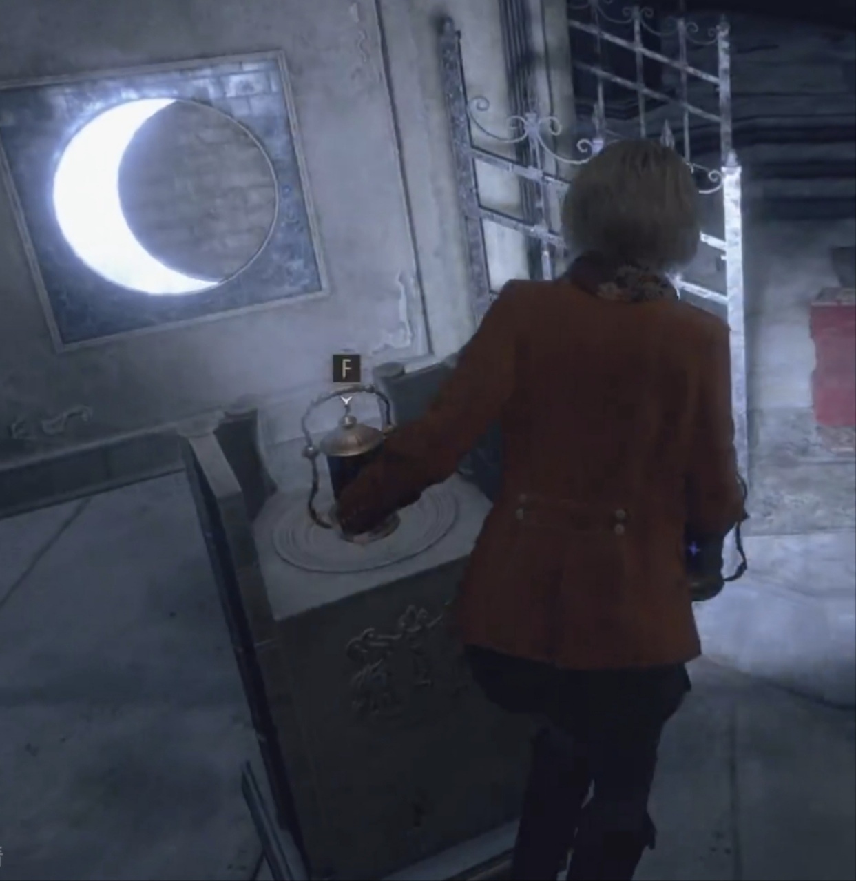 在生化8dlc羅斯魅影開頭不久我們可以看到羅斯的鞋上印有一輪彎月。以及dlc後面的場景,被遮住的月亮。