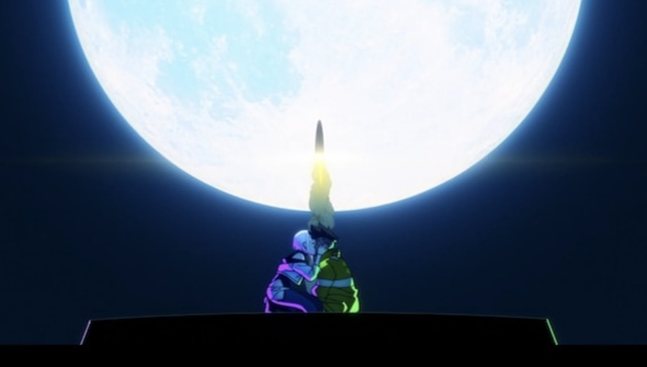說到賽博朋克就不得不提《邊緣行者》中露西和大衛了。月球上的約會,月下的那一吻,以及最後大衛快要失智露西將他吻回。