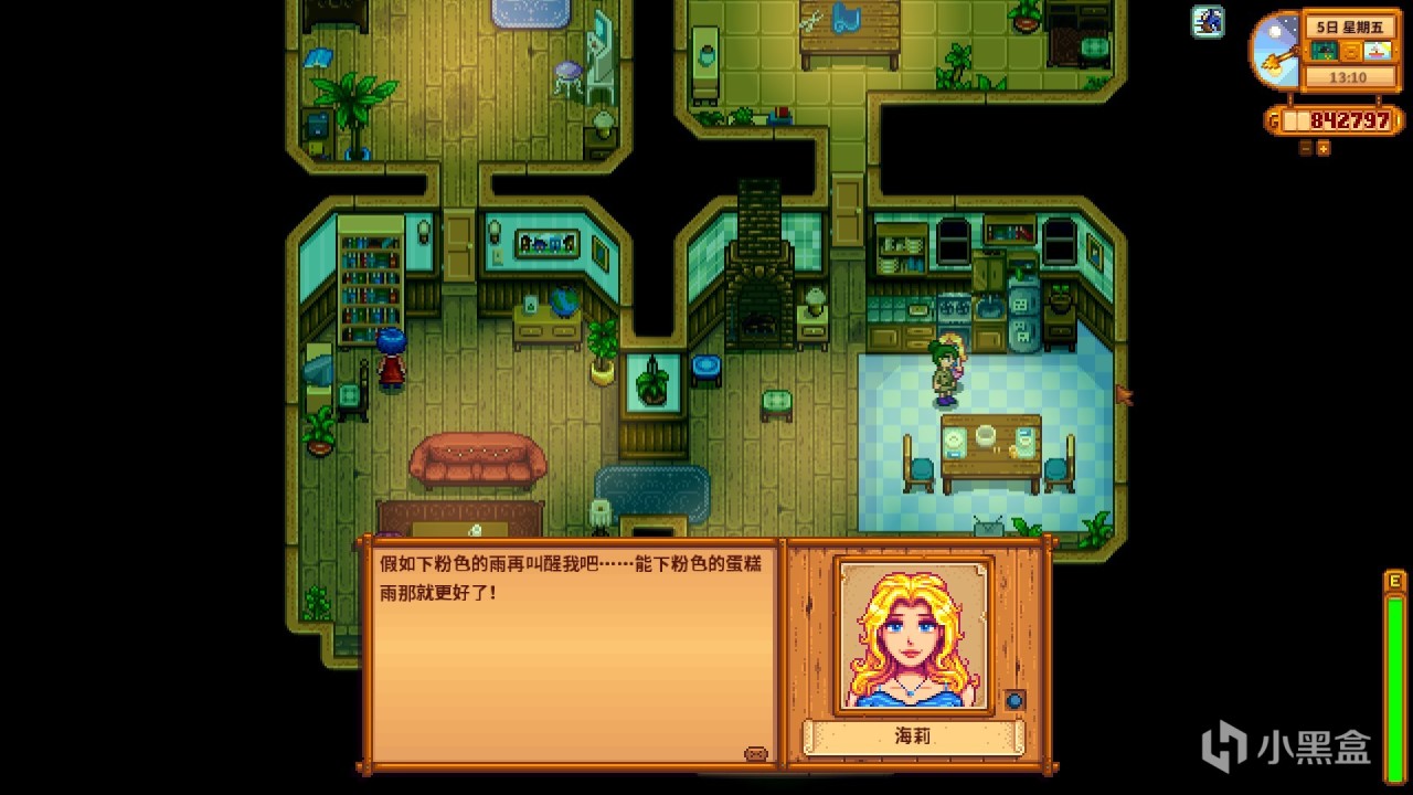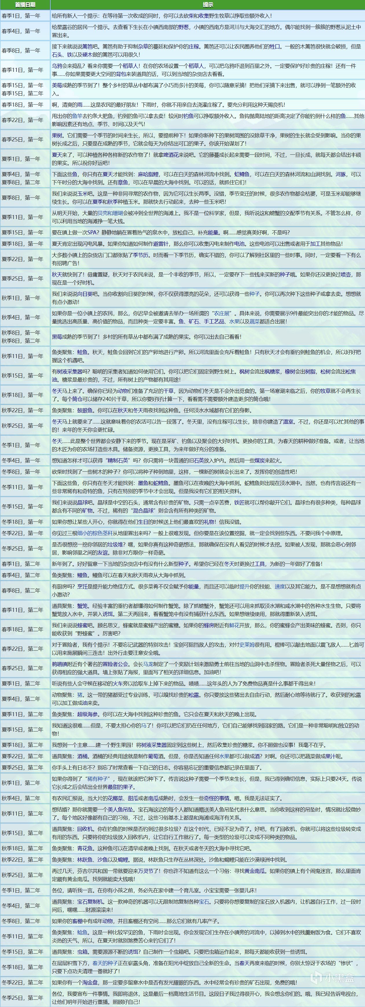 (5)在第一年的苔雨,格斯的星之果實餐吧全天開放,除了德米特里厄斯、莉亞和萊納斯之外,大多數村民會呆在室內。第一年的苔雨不能給村民送禮。