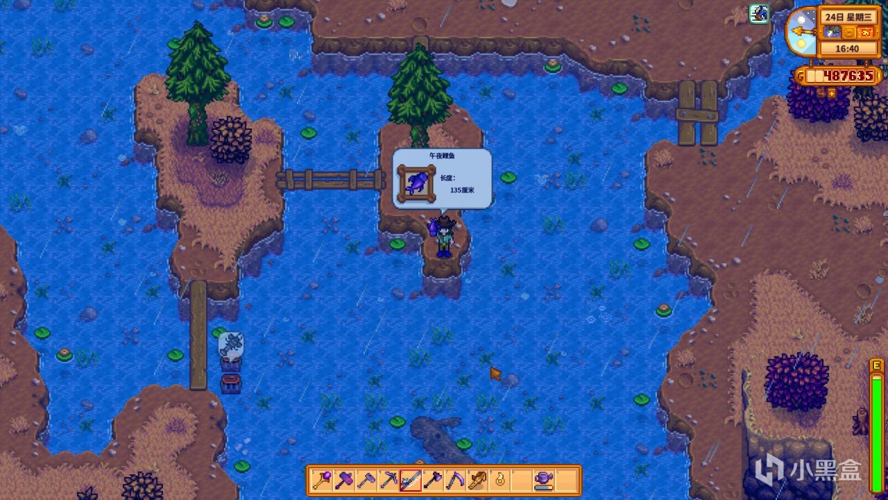 (1)在暴風雨天,閃電可能會擊中農作物或樹。如果閃電擊中果樹,會將其暫時變成煤樹,擊中地板或小徑會從地面上掉落。閃電不會擊中放置在外面的寶箱。