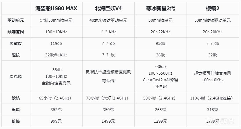 虽然考虑到1299元售价很贵,我一开始也觉得贵了,但是看了下其他选手,海盗船HS80MAX,999元,北海巨妖V4 1499元,赛睿寒冰新星二代 1299元。