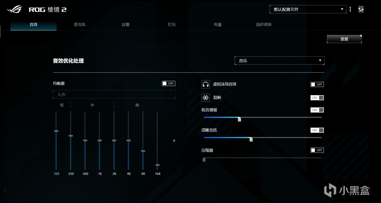 音乐设置,如果你不知道咋调,可以直接参考我的。顺带一提,虚拟环绕声在听音乐的时候最好关闭掉,打游戏最好打开。如果你对声音要求比较高,建议一直关闭。