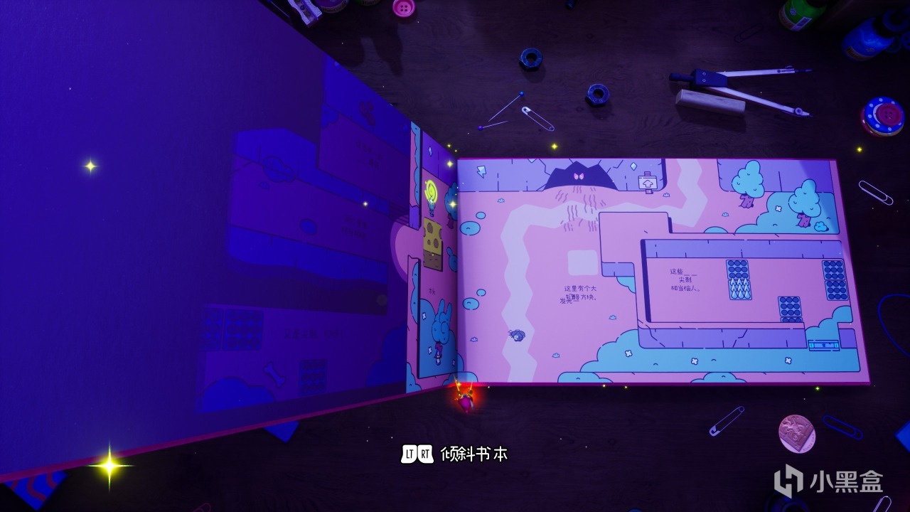 第四個關鍵詞在於“傾斜”——你可以在翻頁界面傾斜書本,讓頁面中的物體移位——應該說本身很有想象力,但是僅可以在特定場合左右移位,讓它並沒有產生多少“gameplay”層面的樂趣,這裏其實配合手柄的陀螺儀應該是有很大的設計空間,不過畢竟是PC遊戲,所以也能理解。
