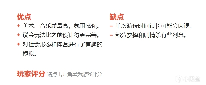 《冰汽时代2》相较1代有更精致细腻的画面、更沉浸投入的氛围、更宏大严肃的配乐,是一款优秀且深度的城市建造资源管理游戏。能看出开发组是想做出由外部矛盾向内部矛盾的转变,但流程中并没有贯彻到底。前中期的派系社交还是以平衡各资源为主,只有最后部分突出了矛盾冲突。游戏全程的教程和指引没有特别详尽,对于新人入坑来说不太友好,需要花费大量时间去理解。结局部分总想让玩家引发点思考,但其实不如一句鼓励来得实在。