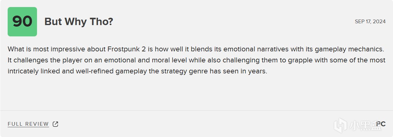 《冰汽時代》,可以說是喜歡模擬經營的玩家來說都不會陌生的一個遊戲,而它的全新續作《冰汽時代2》也是即將於9月21日正式發售了,伴隨着發售日的臨近,各大媒體對於這款遊戲的評分也是逐步的放了出來,整體的媒體評分說實話遠超出我的預期(難道要開始開香檳了麼!)