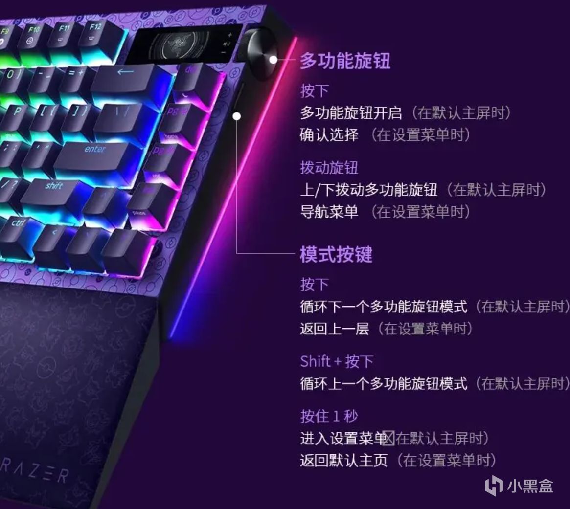 此外,这款键盘还配备了OLED显示屏和多功能旋钮,用户可以根据自己的喜好进行个性化设置。全键热插拔功能让用户可以轻松更换键帽,打造独一无二的键盘外观。而RAZER CHROMA RGB灯效的加持,更是让这款键盘在夜晚使用时展现出独特的光影魅力。