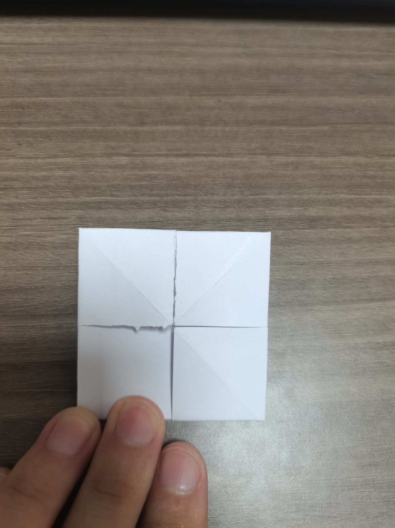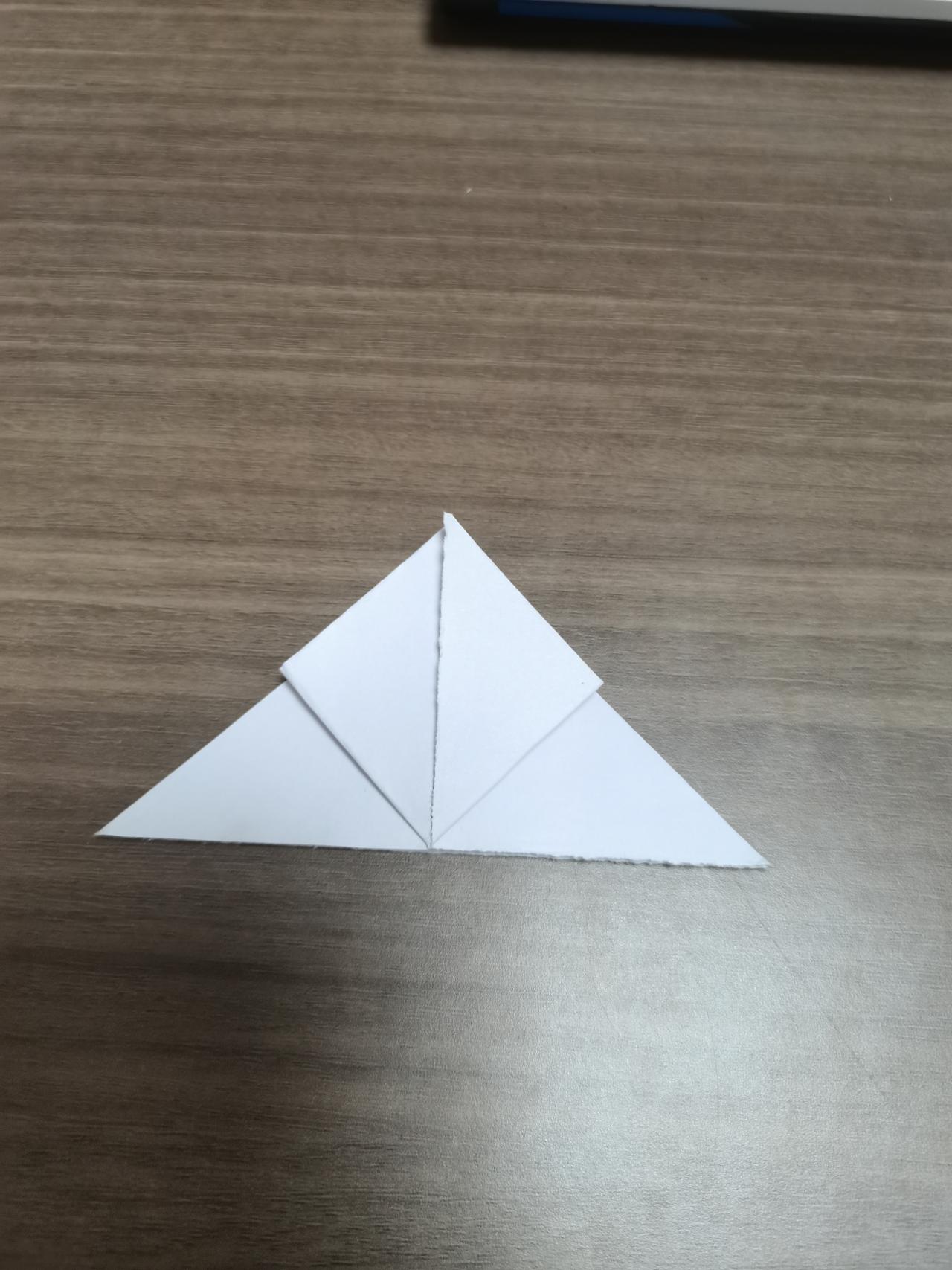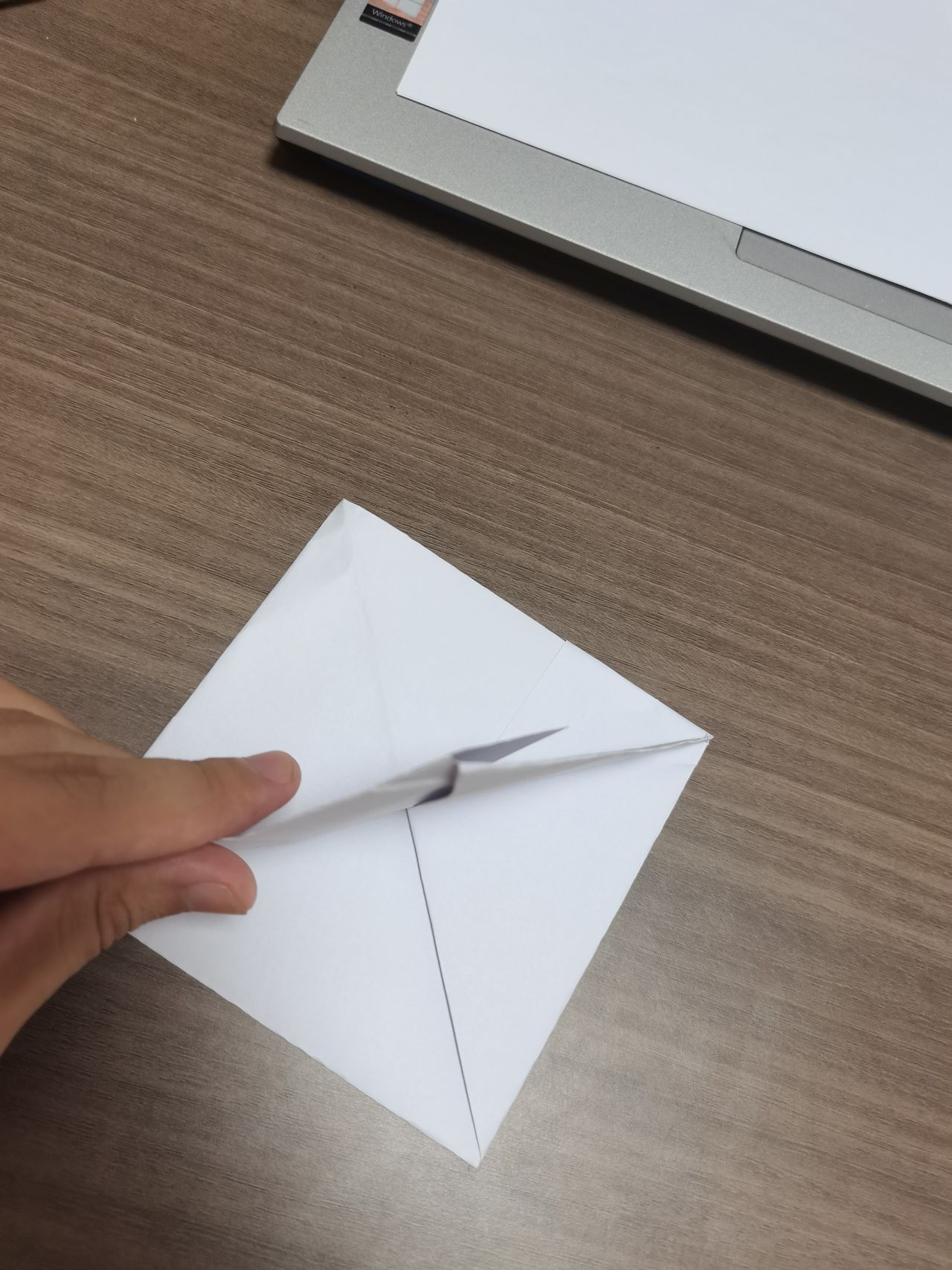 8.對摺後,下面的部分會相互擋住,把其中一部分放進去
