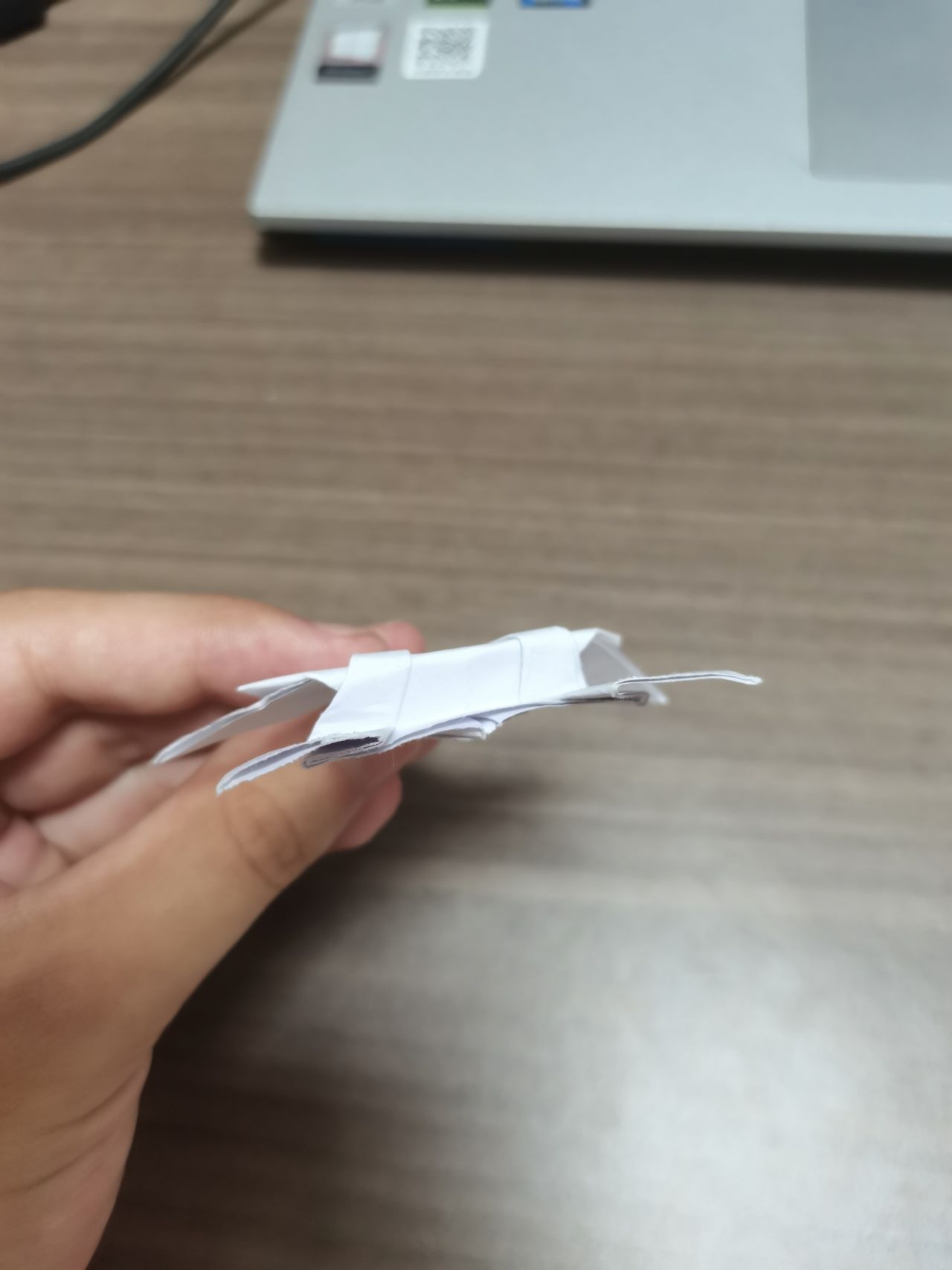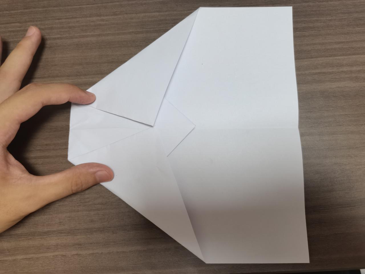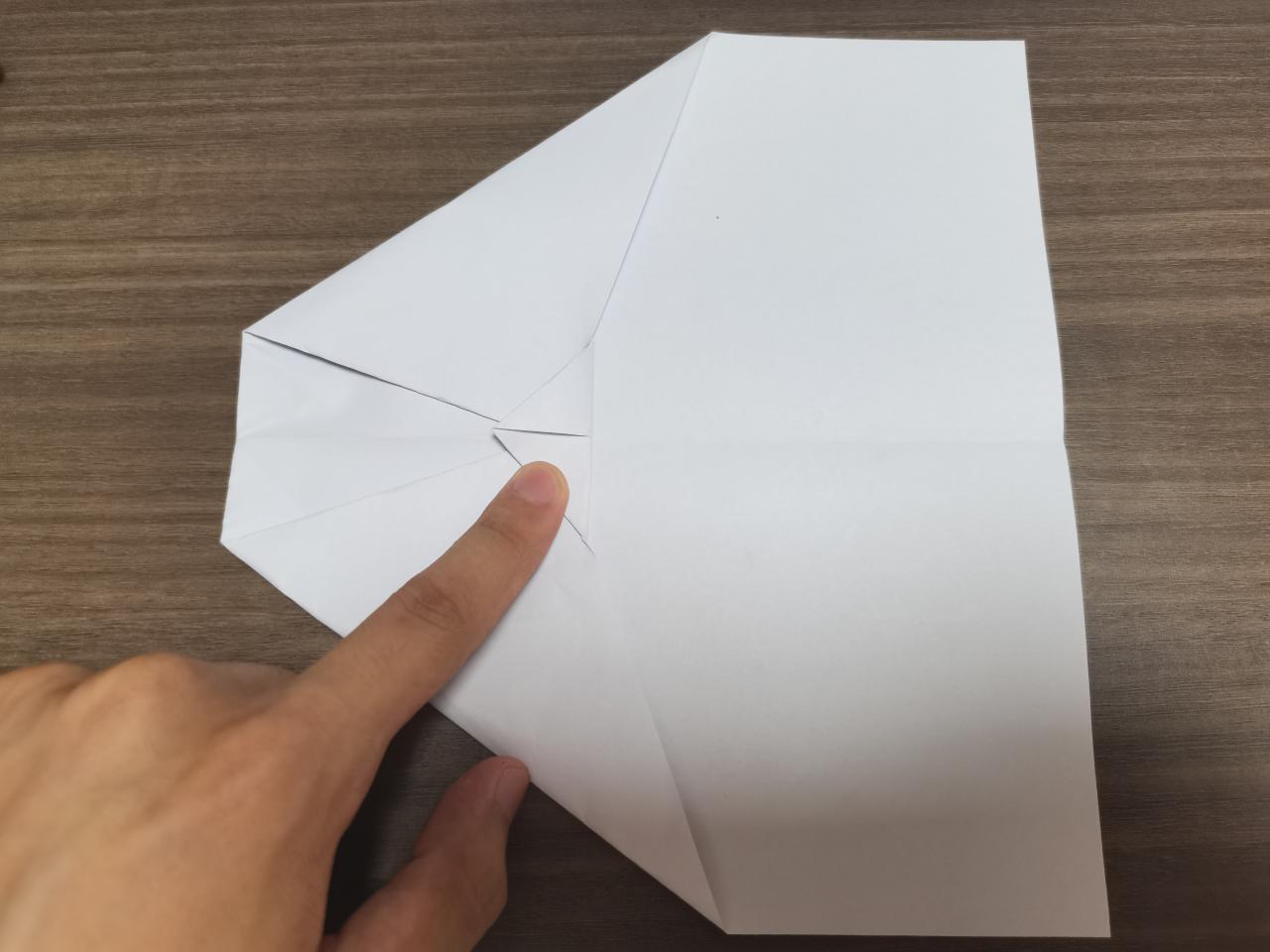 8.對摺後,下面的部分會相互擋住,把其中一部分放進去