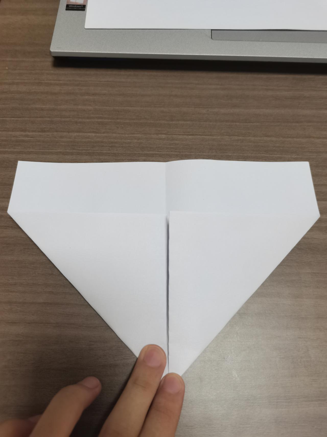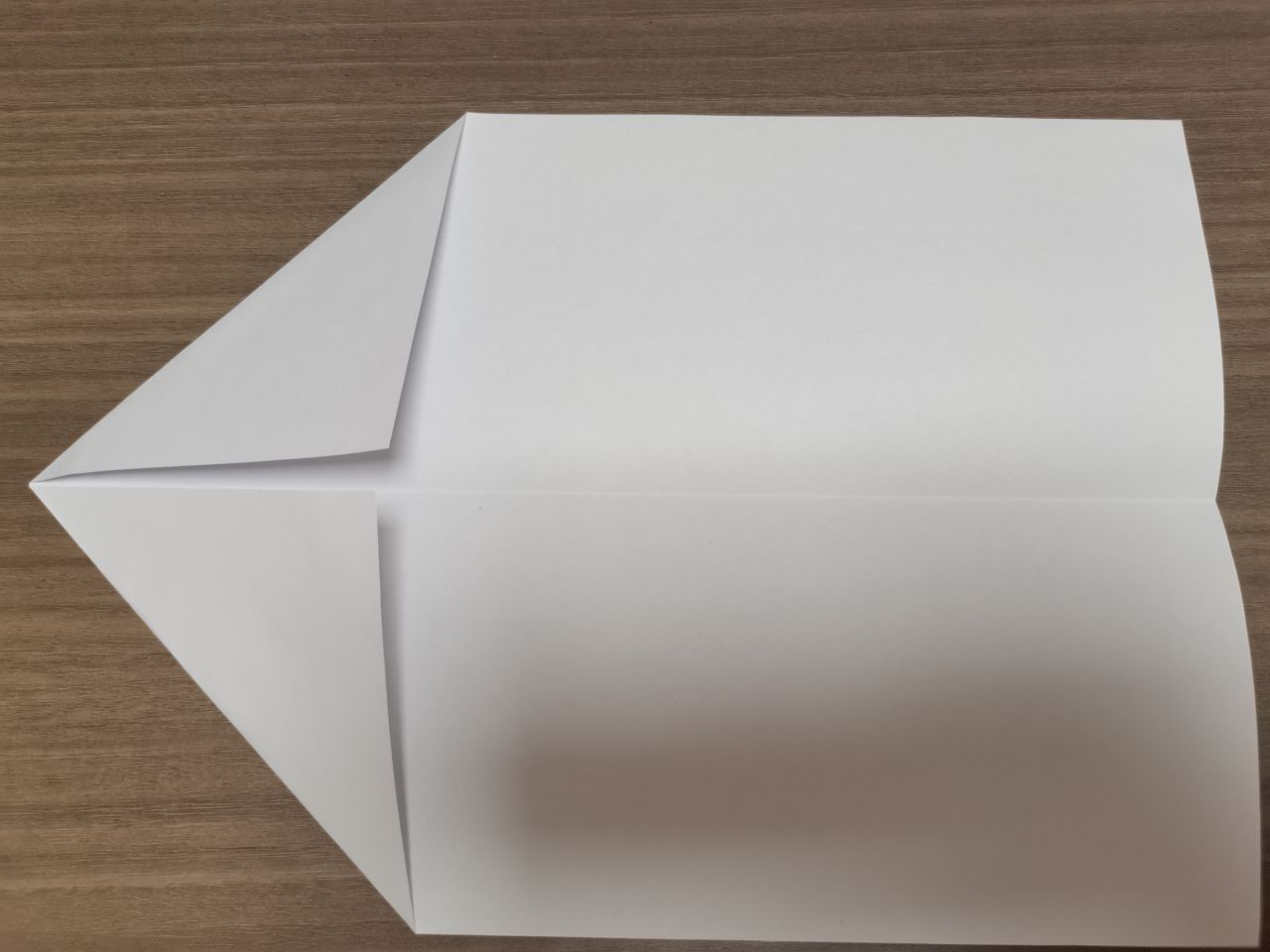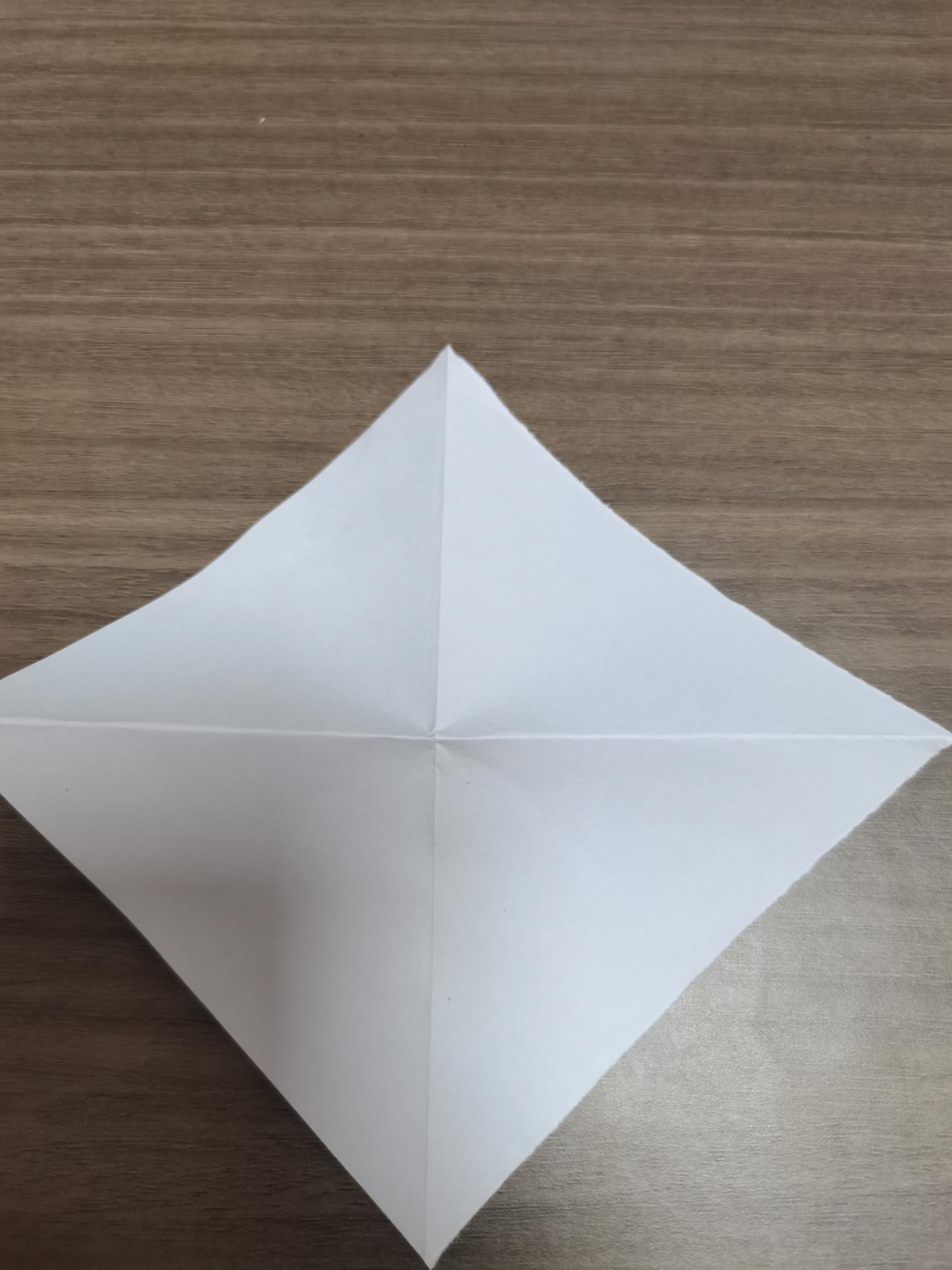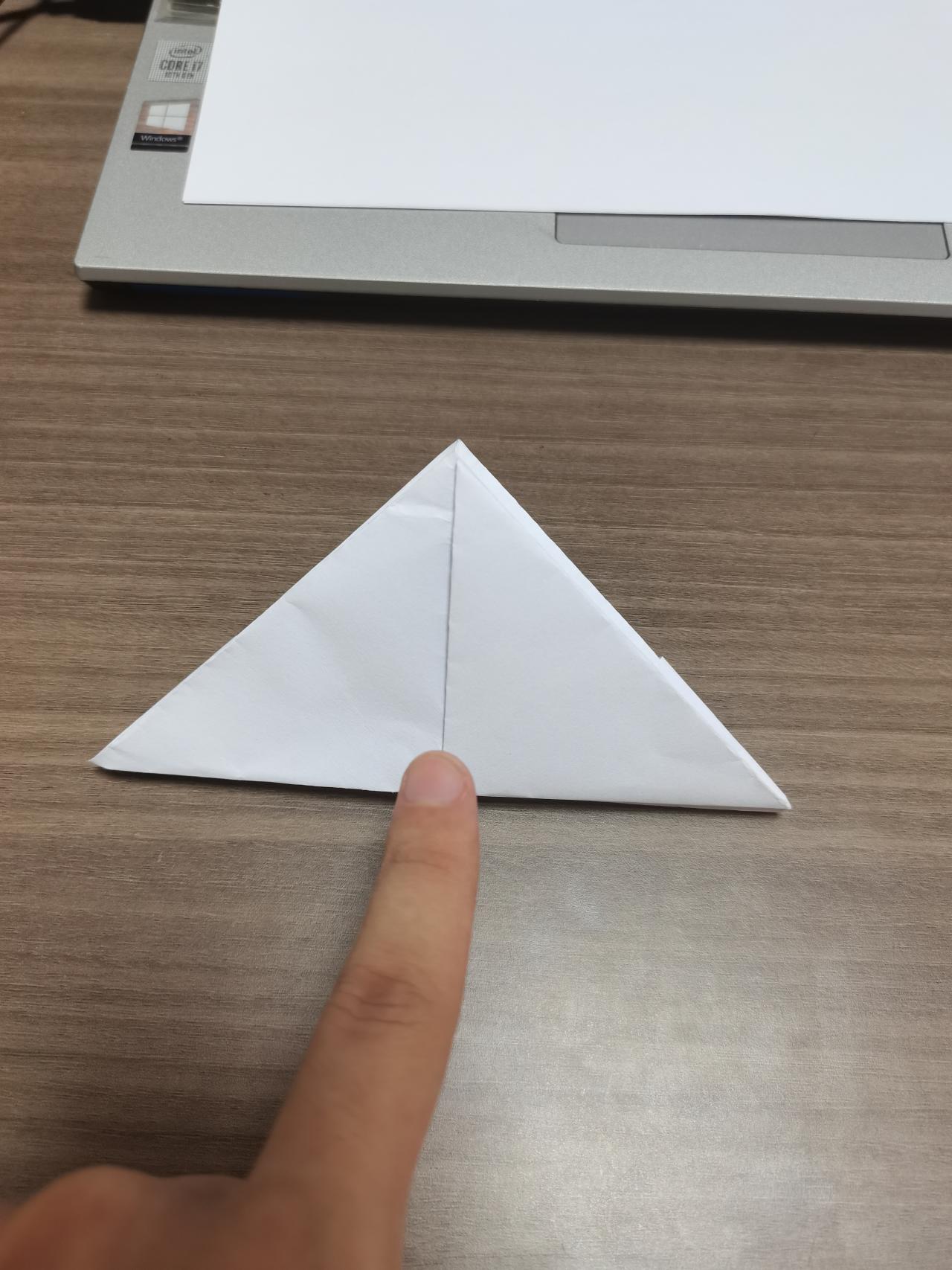 5.將兩角斜着折向中線某點,留一個“尖尖”