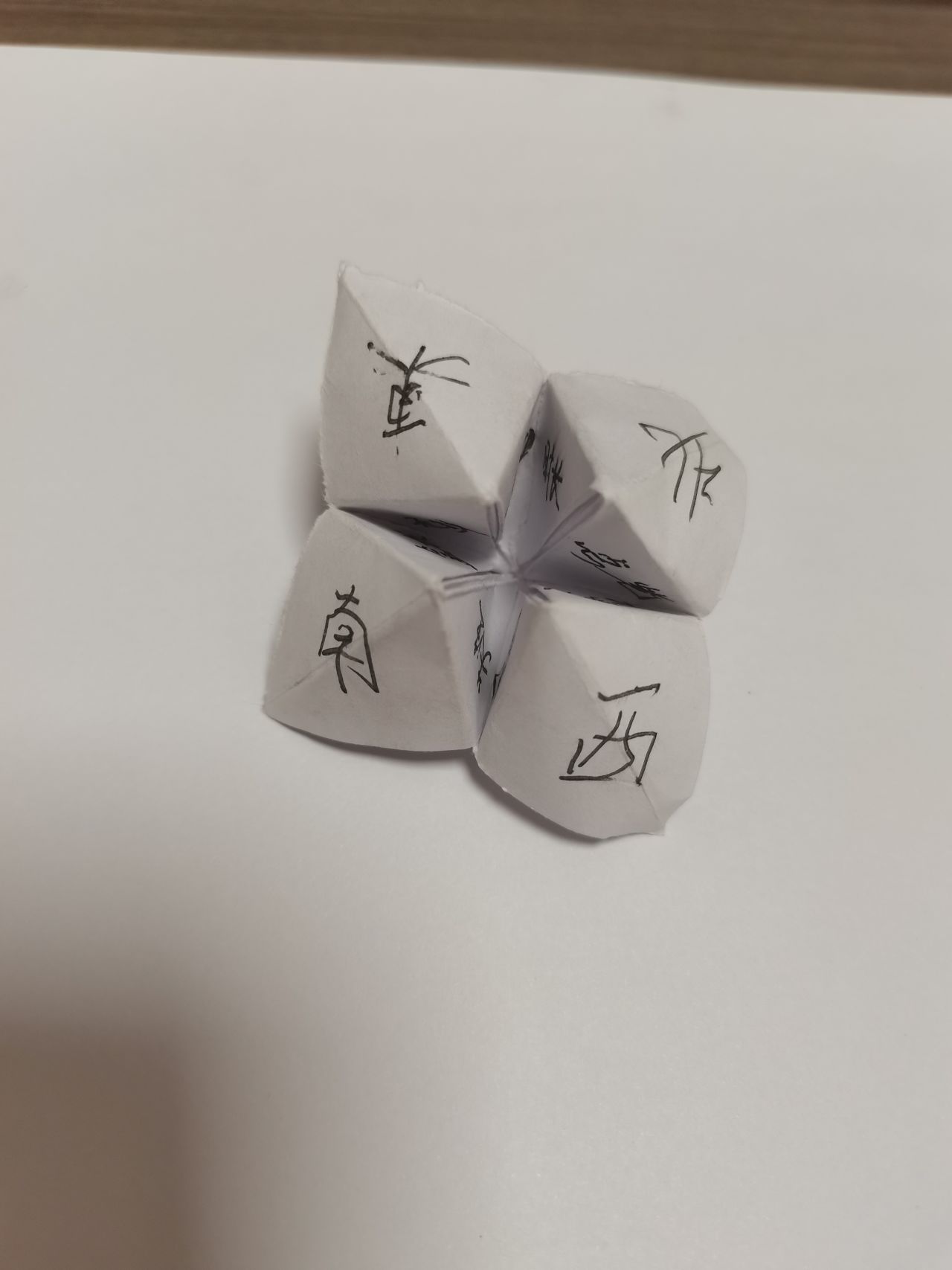 9.在“東、南、西、北”面把它摳出來,這樣就完成啦