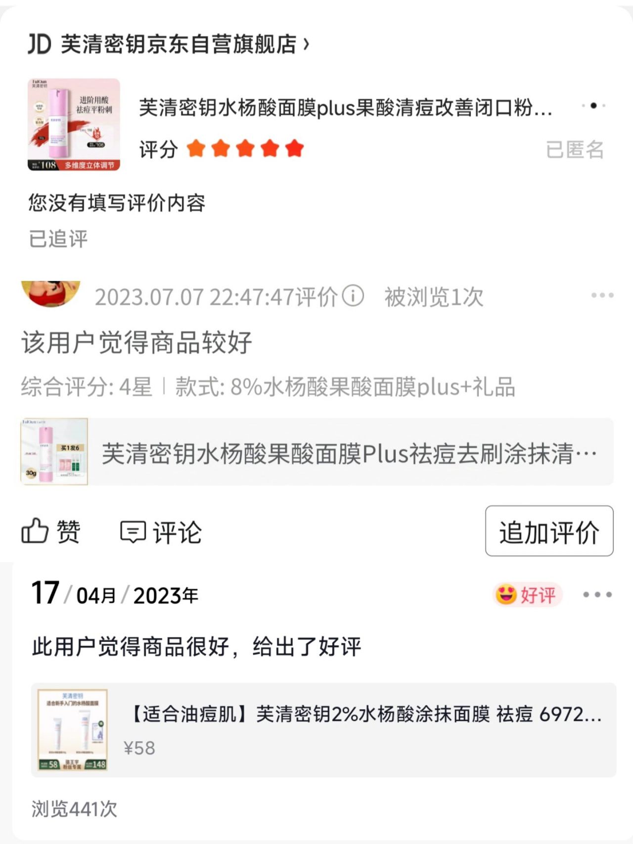 2.芙清這個!以前沒刷過酸的我建議買五十多那個2%的,刺激小一點!塗在臉上不會感覺到火辣辣的。
