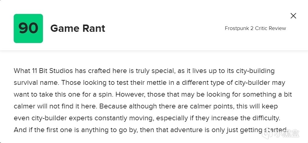 而之前給黑猴打60分的“客觀媒體”Game Rant這次也給《冰汽時代2》打出了90分的高分。