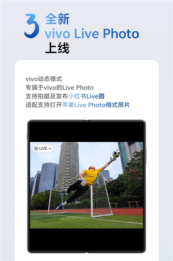 用户可以使用vivo动态模式拍摄和发布小红书Live图,同时,手机还将支持打开苹果Live Photo格式的照片,进一步丰富用户的拍照和分享体验。