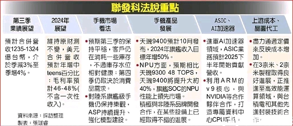 ◆ 售價:蔡力行表示天璣 9400 芯片的平均售價(ASP)也會高於前代,並積極開拓國際市場。