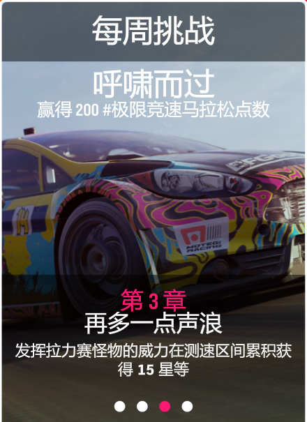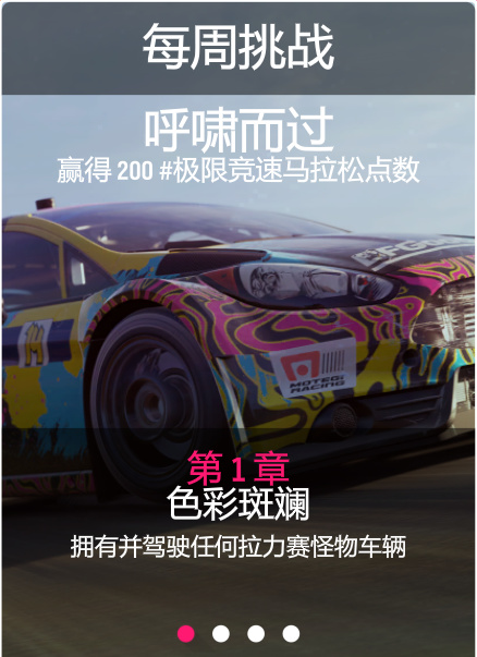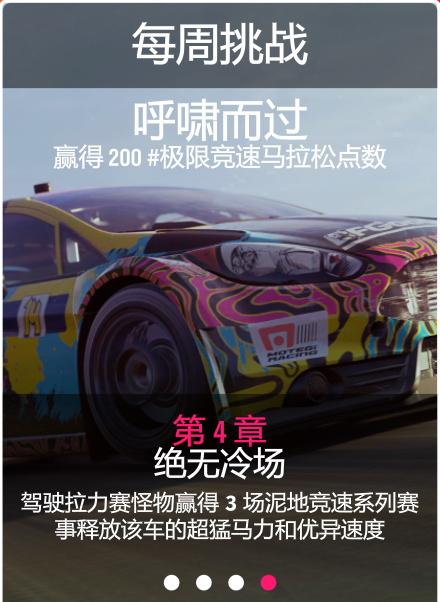 本周挑战为驾驶拉力赛怪物车辆完成各项任务