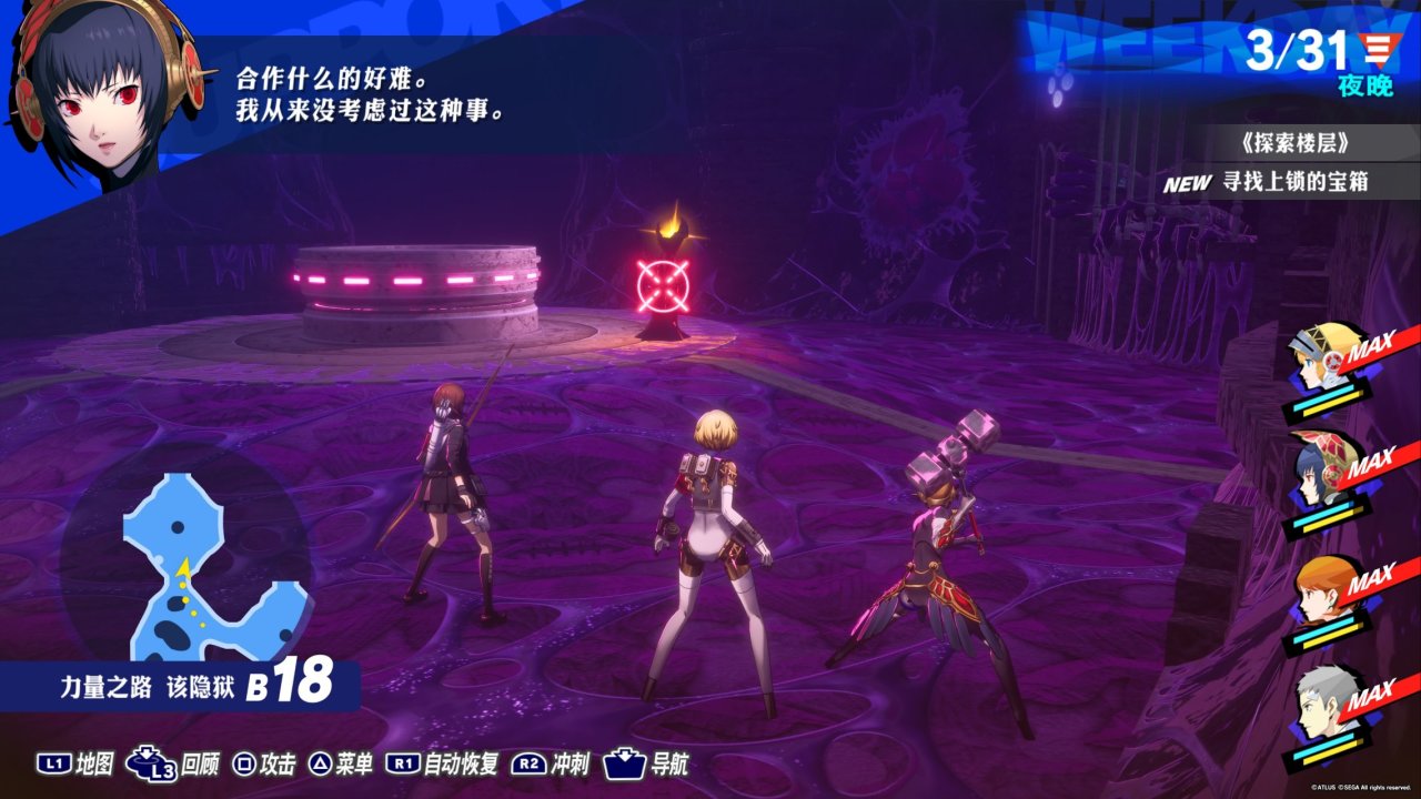 与本体不同,DLC主打战斗,日常的部分比较稀少,本篇的剧情氛围也一直是较为沉重的,一些日常好感度对话也少,但也不是没有,每次对话后角色的神通法也会相应提升,也算是在DLC里了解主角团的一个方式。游戏中总共有6扇“门”,类似本体塔尔塔罗斯的玩法,地图都不带改的(不愧是你A社),每通关一扇门就有单独角色的额外剧情,都是本体里没有的。