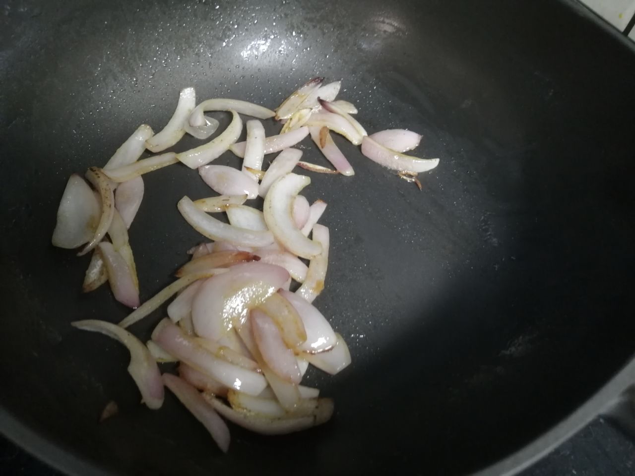 这时候你大概率能闻到一种让你疯狂分泌唾液的香味,但是别急,这里需要点耐心。这就是我前面提到的独门秘笈。这个步骤多翻炒,把洋葱炒成软趴趴的状态,里面的辛辣刺激性气味会最大程度的挥发掉