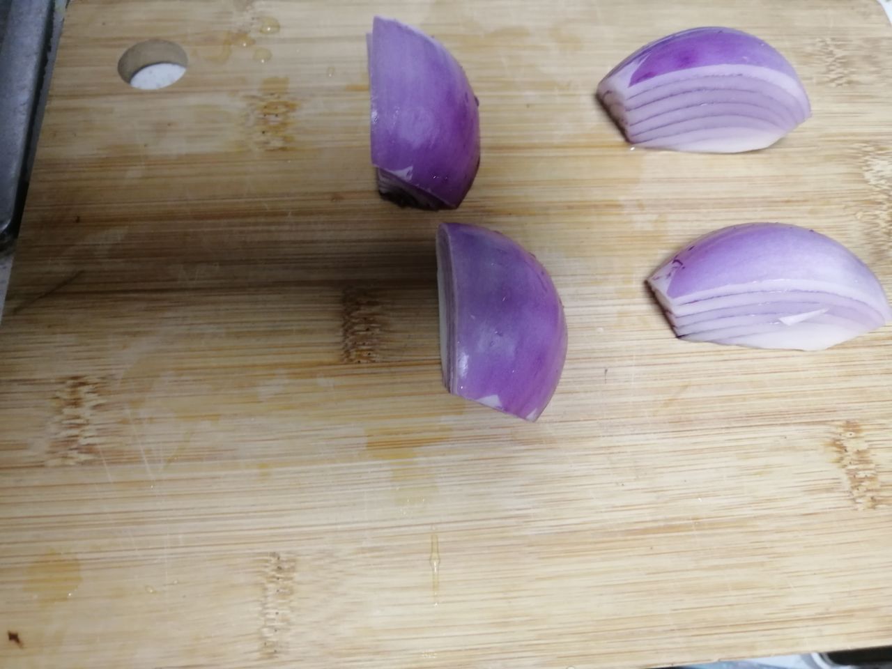 洋葱可以清洗之后在表面划一刀然后放心上手,最外层没那么辣,而且粘着土不好洗干净,我一般都是直接剥掉了