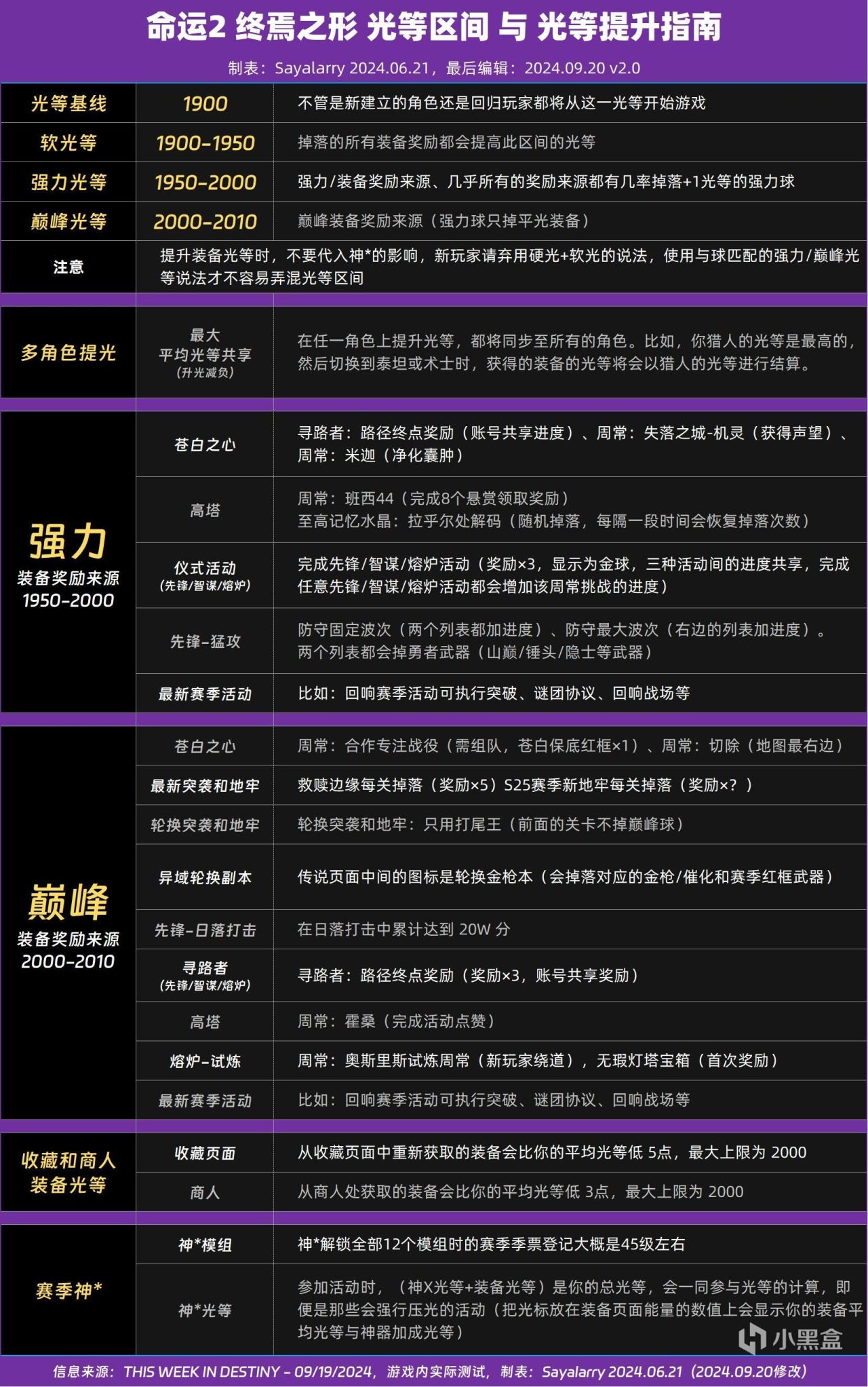 光等调整至:基础光等 1900,软光等 1950,强力光等 2000,巅峰光等 2010。玩家需要提升10点光等(可以通过新突袭新地牢快速提升)