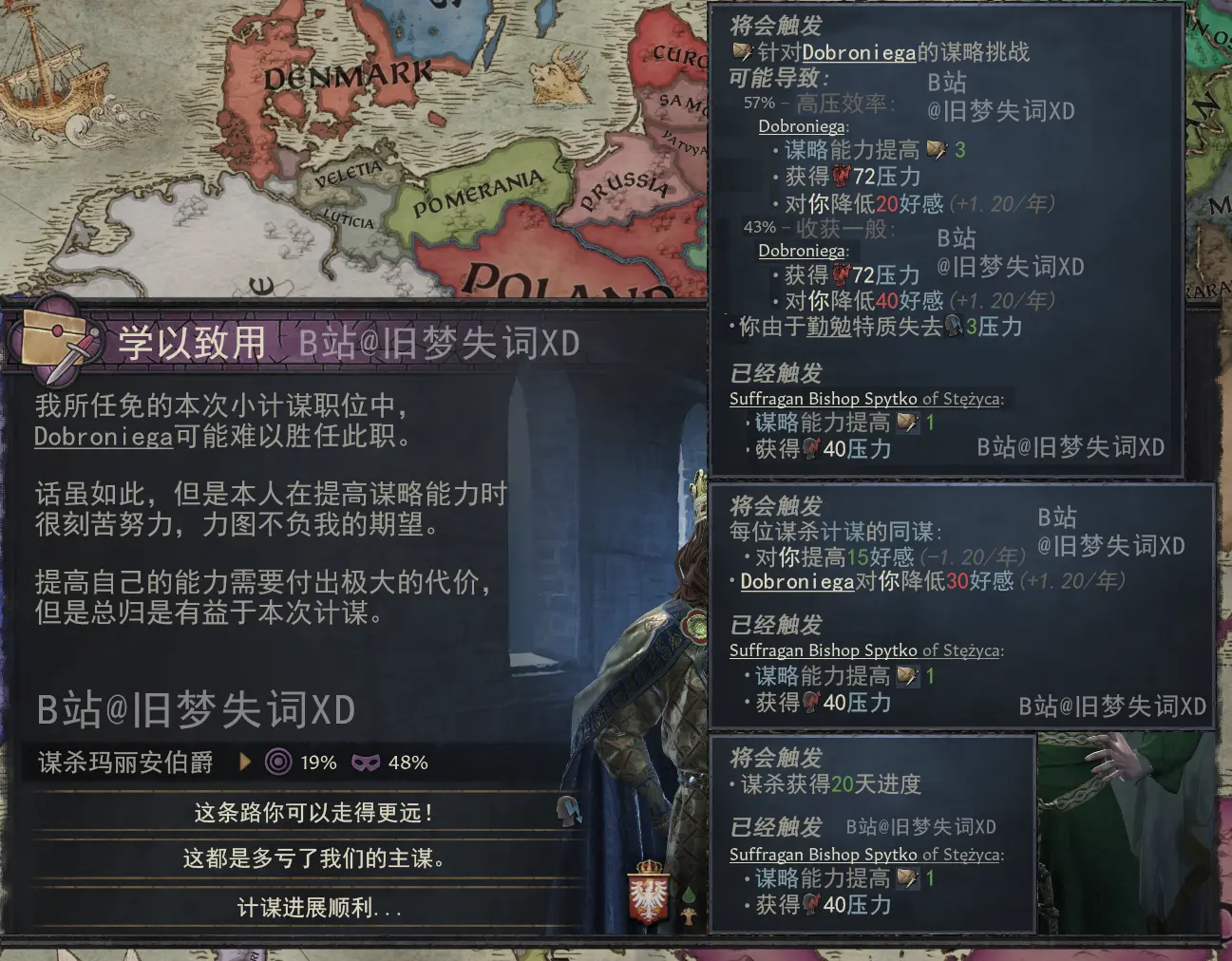 为了提高计谋机制的娱乐性,我们还新增了一系列同谋职位专属事件。比方说破坏某些人的人际关系,让某些人专注于学习提高谋略能力,或因为共同的仇敌而相识。还可以给合作愉快的同谋者一些小费,或者安排两个仇敌在同一计谋下,当他们因私误公时给予惩罚。