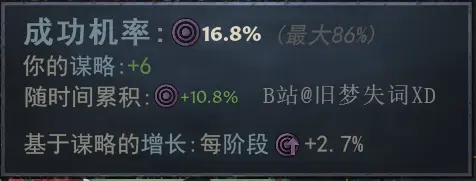 综上所述,成功机率会随着时间的推移而提高,而玩家所能干预的只是缩短成功率提升的时间间隔,并决定最终承担多大风险来执行计谋。