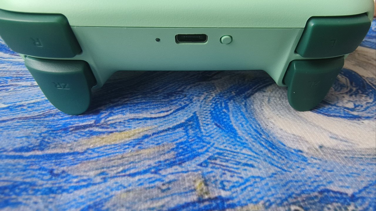 然後是背面,這兩個背鍵手感不是很好,但好在觸發還算清脆,感覺還可以吧。這個手柄給人的感覺就是哪裏都感覺還可以,但就是讓人很不爽。也是這個價位確實挺不錯的