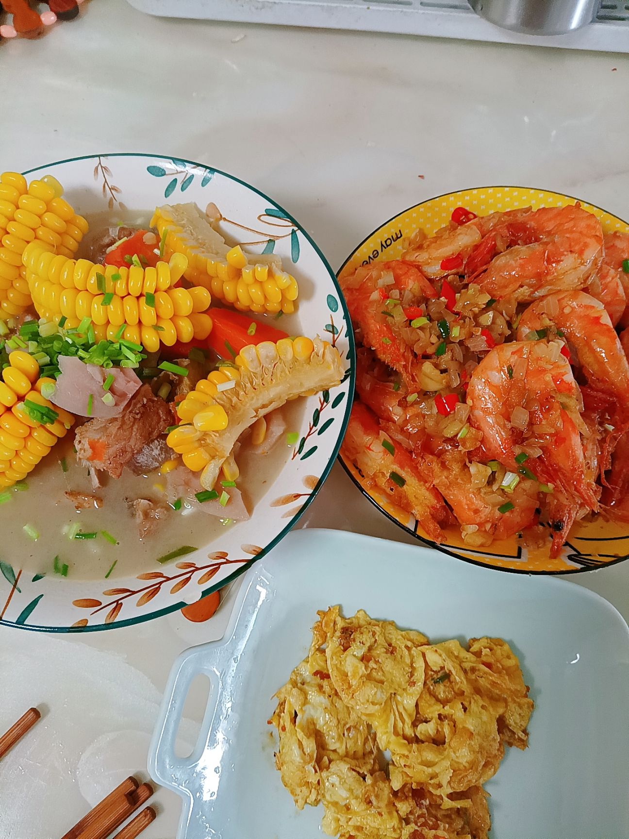 食材:2个玉米,1个胡萝卜,1节藕,老姜,排骨,葱