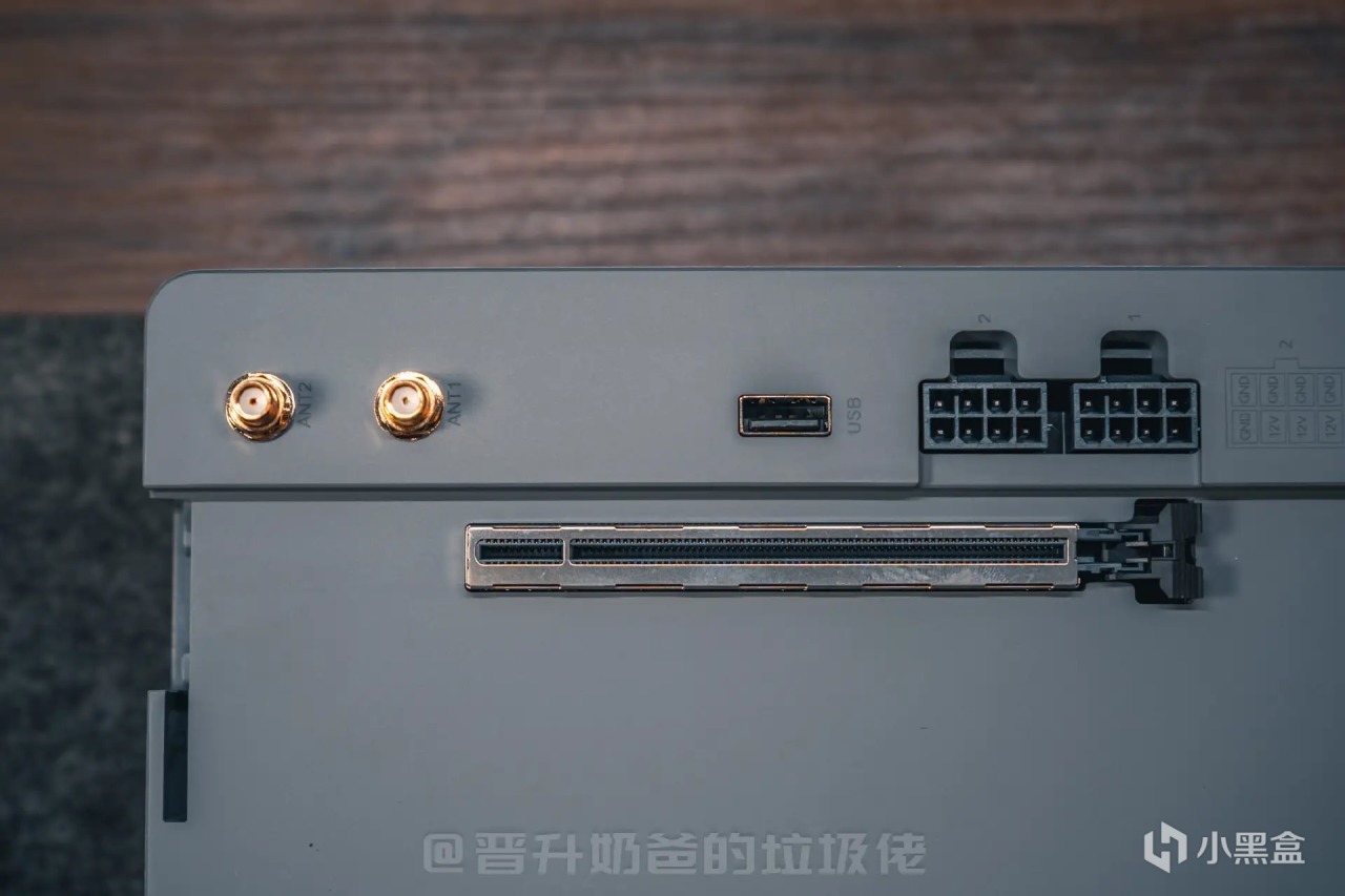 ▼EX拓展塢提供了雙8Pin供電接口、一個USB 2.0網口、金屬強化的PCIe 顯卡插槽以及無線天線接口,能夠滿足Nvdia 4080及以下顯卡的供電需求。